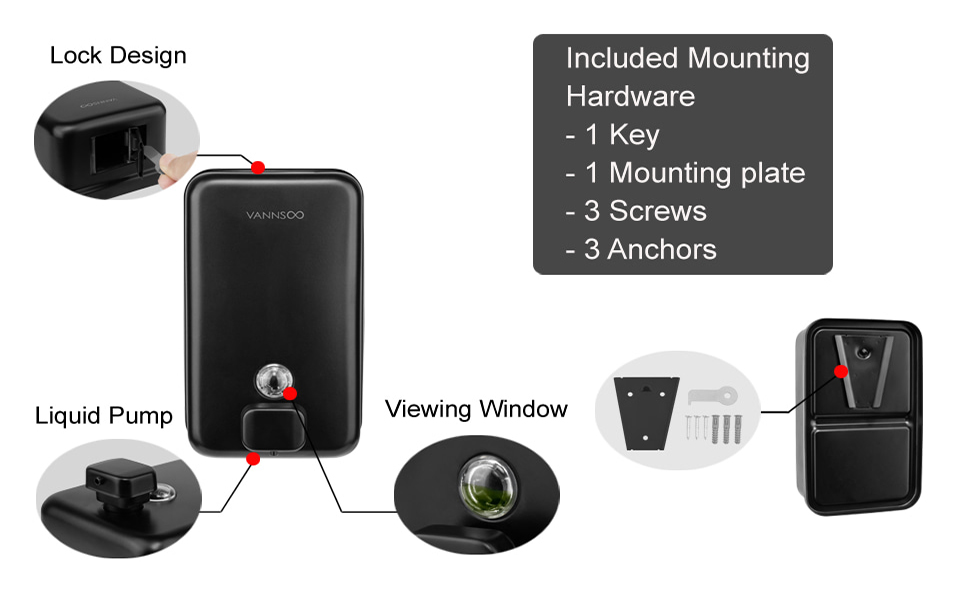 VANNSOO黑色皂液器,优质304不锈钢材质,适合高端商业浴室!