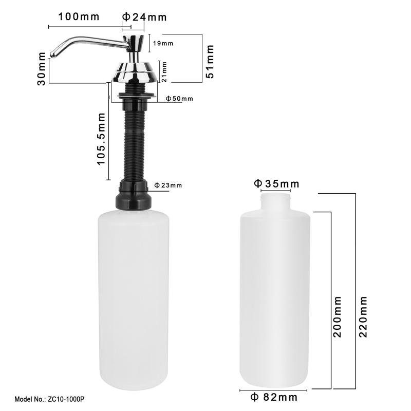 这 台下皂液器 可安装在厨房水槽或浴室梳妆台的大理石台面上,适用于公共厕所和家庭浴室。无论您需要在厨房使用洗碗液还是在浴室使用洗手液,这款皂液器都可以满足您的需求。